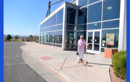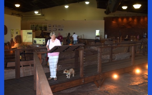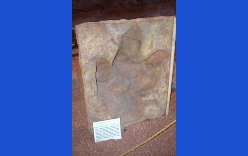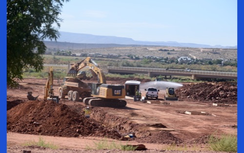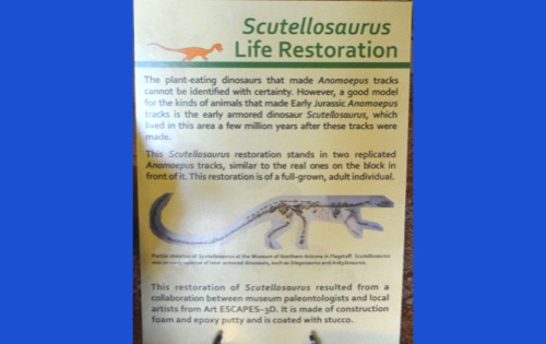 First, however, we went to St. George Dinosaur Discovery Site at Johnson Farm. The museum itself is built over the land where the dinosaur tracks are found. Yes, everything was original and archeological work is still being done on the site. Today it is very much a desert area but we were surprised to find that a park is being built next to the museum. Men and machines were working in earnest. The temperature was 102°F.