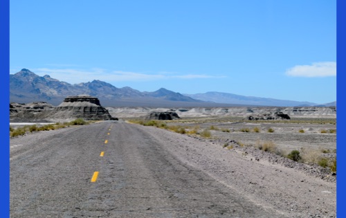 Below are the promised pictures from when we turned from the Blue Diamond Road in Nevada onto Tecopa Road and drove through the backside of California toward Baker CA. We saw a very nice mission there which looked out of place. We didn’t see a car coming and going until we hit Highway 127. We loved it!
