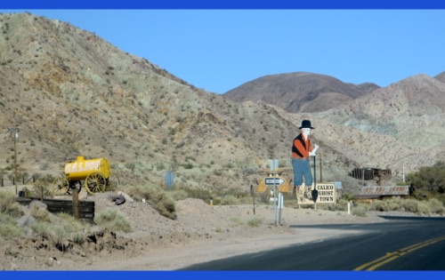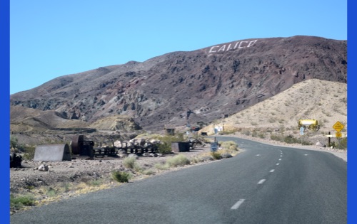 Between Baker CA and Barstow CA there is Calico Ghost Town. We thought we’d drive by and take some photos. Wrong! It turns out that this is a restored ghost town by a certain Mr. Knott (yes, of Knott’s Berry Farm). He purchased the town and land in the mid 20th century. To get in you have to pay and tour the town on foot. Money was not the issue. Closing hour is at 5:00 p.m. and we arrived at 4:40 p.m. There was no time to appreciate it properly. We shall have to come by another day. There was no disappointment: We had a great drive!