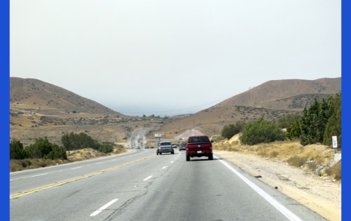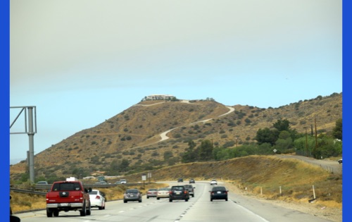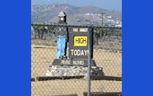 Today’s trip was to simply get home without any sight seeing. Still we saw lots of little things on the way…things we could take pictures from the car. That kind of picture we call a drive-by. One was a picture of Smokey the Bear warning of a high fire danger today. He was right. There were at least three fires reported in the area. Naturally, we drove by the worst one.