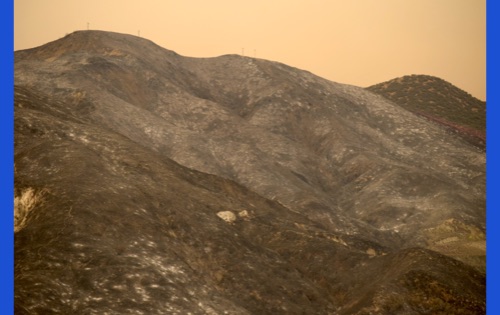 This spectacular fire, south of I-14 in Placerita Canyon, began about 1,000 yards from the home of my good friends, Bart and Lori. Both are professional musicians and you may choose to find out more about them by clicking here. Fortunately for them the wind was blowing away from their home.