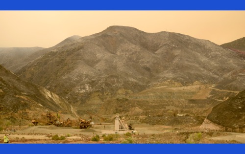 Below you’ll see a picture of a helicopter dropping water & fire retardant on a flame behind a hill. Luckily for the fire fighting copters and water dropping planes, they could go to Castaic Lake to refill. Traffic was a bit heavy today and possible slowed down by the sight seeing public. It actually took three hours to get to Jorge’s place in Woodland Hills and Ellen took an hour and a half to get to her place (usually a 42 minute drive). I guess the world decided to drive to the beach to cool down. It was 106°F in Woodland Hills and 78°F in Oxnard!