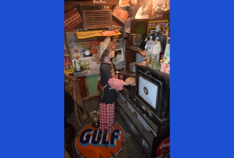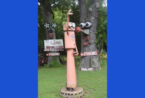 The Hillbilly Garden and Toyland Museum has its webpage. Click here to see it. Keith, the owner and docent, has lots of videos there. Ellen and I think that Keith himself it the main attraction. He describes his hillbilly folk art through his many, many puns. It’s all very punny!