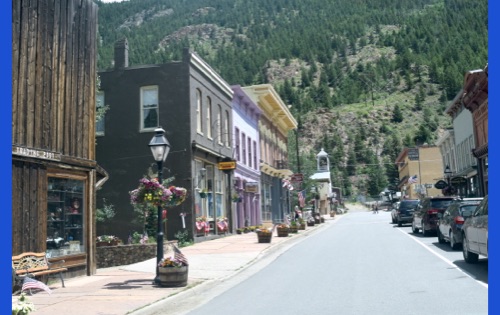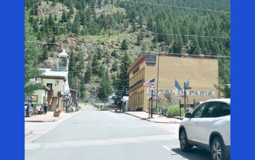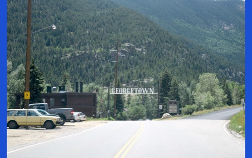 We thought that Georgetown CO would be a nice place to sit and have lunch. At the visitor center Jorge found a neat cougar to photograph. May someday he will introduce it to Tickle. We have friends that like to jam to old time folk music so we took a picture of the local schedule for them to muse over.