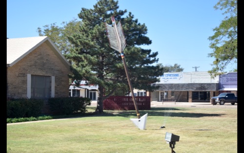 You can’t make this up. As we passed a city or county jail we witnessed two inmates painting the jailhouse bars. It was a beautiful, stressless drive to Wichita Falls TX. We found a very large shovel. Then we parked and walked to see the Wichita Falls (man-made) at Lucy Park. The only thing missing was the water. Then we took pictures of the smallest skyscraper in the world built by a con-man. Yes, you can’t make this up!