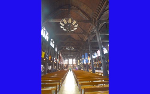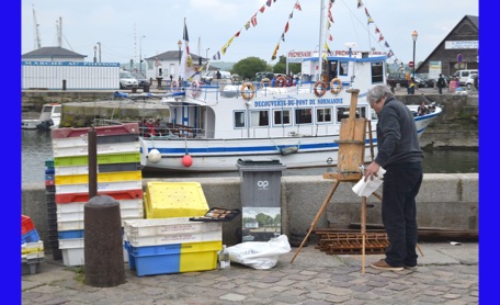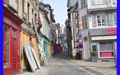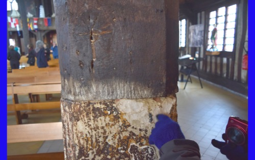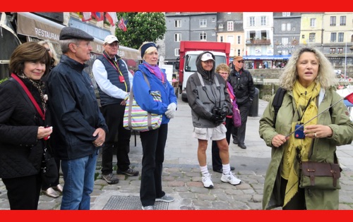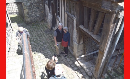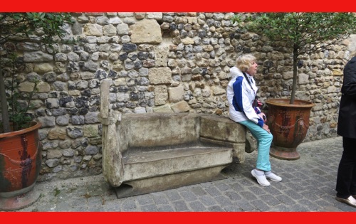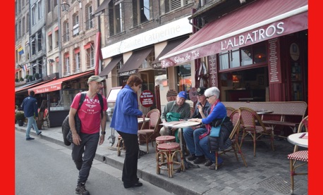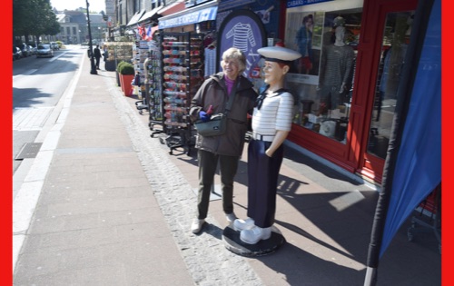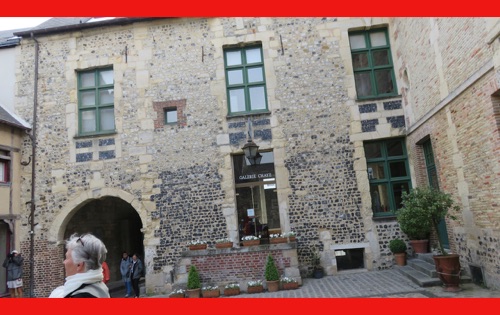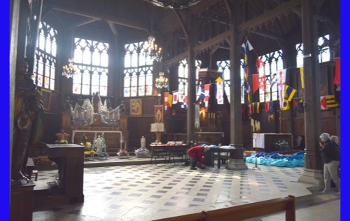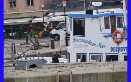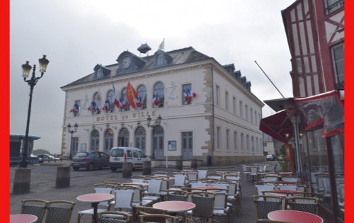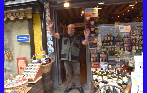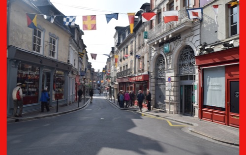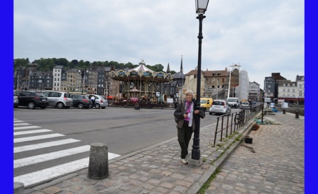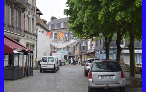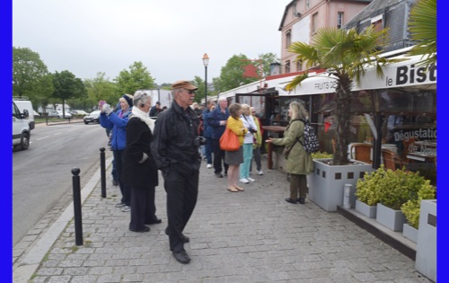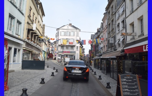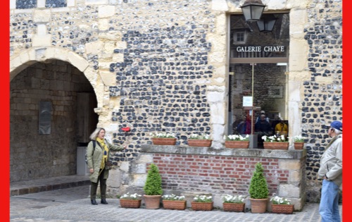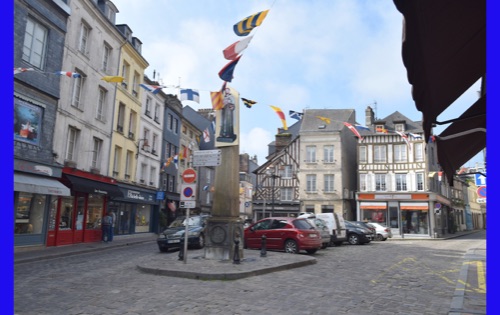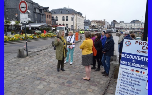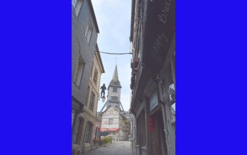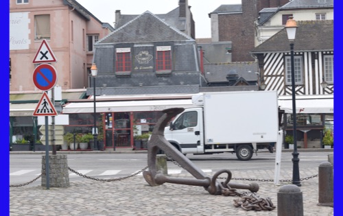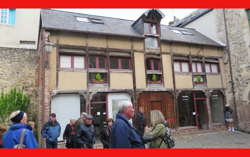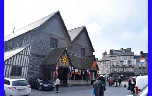 Our last full day in our floating hotel! After breakfast, Isabelle took us on a walk of the little port city of Honfleur, once a busy port. However it has been displaced by La Havre and is now mostly a harbor for pleasure boats surrounded by dozens of waterfront cafes. Honfleur went back and forth between the French and English in the Hundred Years War (1337-1453). It has tiny streets and tons of old buildings. We visited St. Catherine’s Church, which looks like an upside-down ship hull. Why? It was build by shipbuilders, the only folks who had any building skill. It’s bell tower is not on the church. Why? It weighed too much to be supported by the church’s roof.