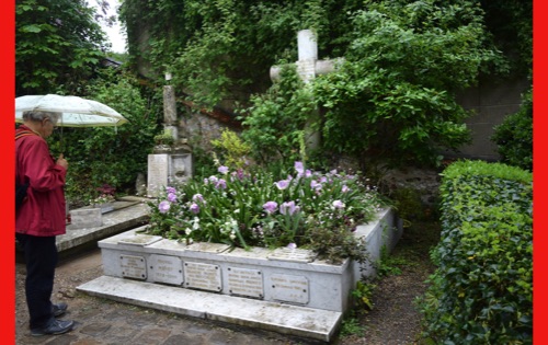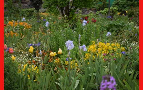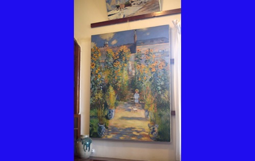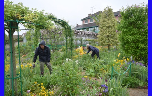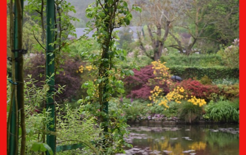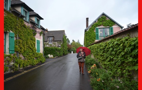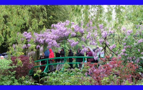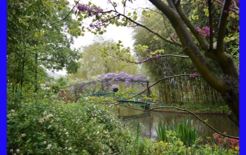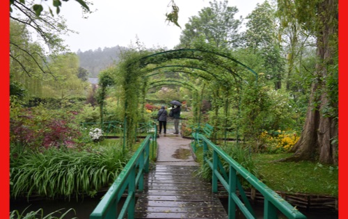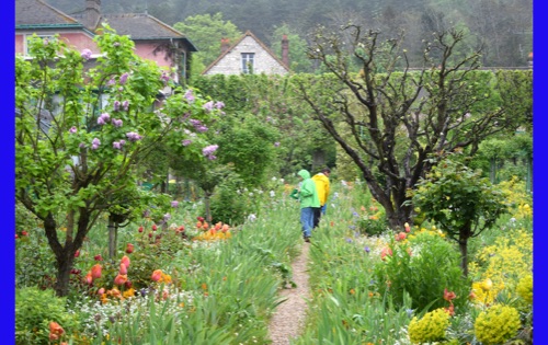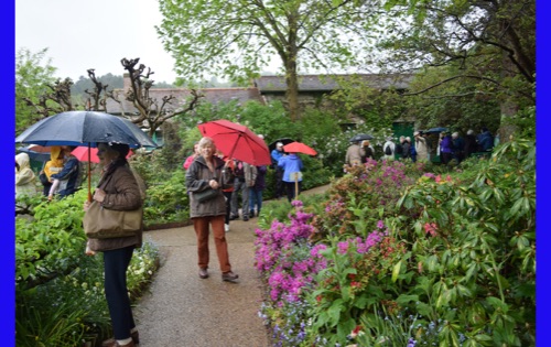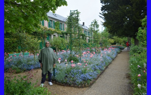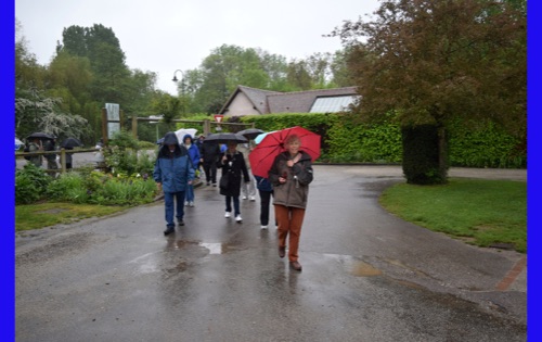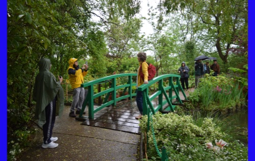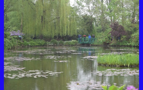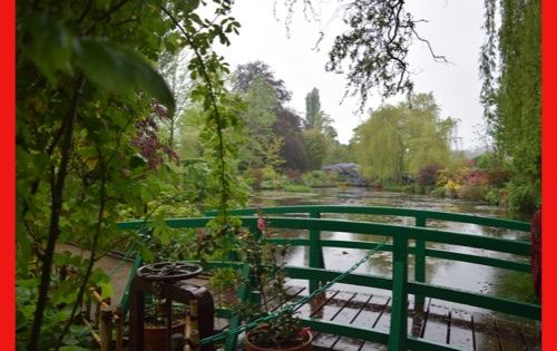 Today we visited the lovely village of Giveny where the impressionist painter, Claude Monet lived and painted for 43 years. He first saw the village from a train window and knew that was where he wanted to be. We visited his gorgeous gardens which are still planted in the way that inspired his paintings. It was raining, but the rain made the flowers even more brilliant and of course had the wonderful earthy, clean smell. We were also able to wander through his comfortable and spacious home, filled with original furniture and many impressionist paintings (reproductions, I hope) and up to the church where he was buried.
