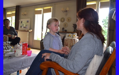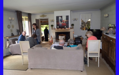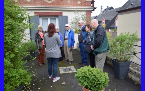 Later in afternoon we went to our home-hosted visit in Vernon. Eight of us were met by the most charming woman, Anne, who spoke beautiful English. We went through a small entranceway and climbed steps to a second-floor courtyard. She invited us into her living room and asked whether we wanted to see the kitchen. Eight sets of eyes popped and mouths dropped. It was one of the largest and beautifully appointed kitchens we had ever seen and wonderful smells were coming from it. She introduced us to chouquettes, fresh from the oven, hot and melt-in-your-mouth delicious. Ten-year old Gabriel and 4-year old, Hortense arrived from school. Gabriel had some food and settled down to his homework. Hortense proceeded to entertain the guests. She was as cute as could be and absolutely aware of it. Wonderful visit!