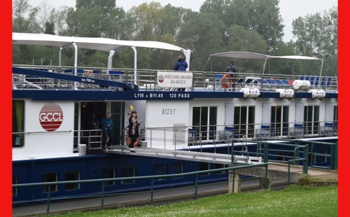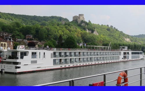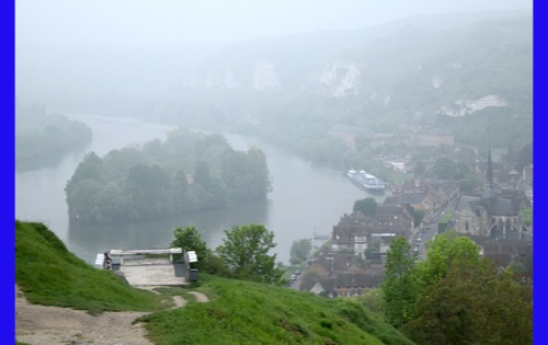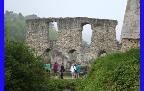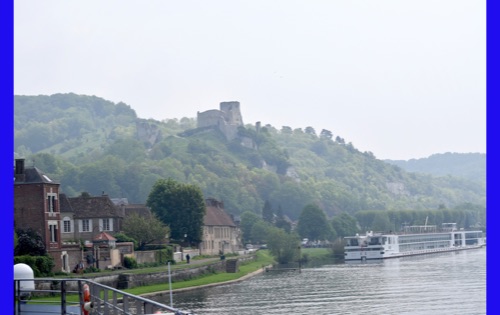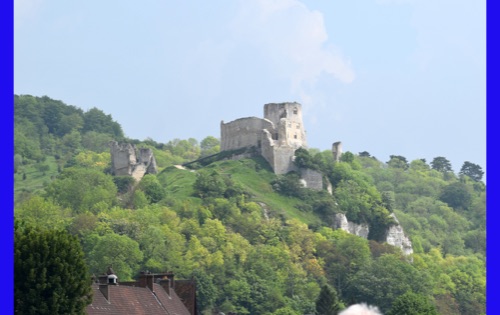 After breakfast, we left the ship and had a choice of a walking tour of Les Andelys, a walk up to the ruins of the Chateau Gaillard, an imposing fortress from the days of King Richard the Lionhearted, or a strenuous hike farther and steeper to the castle ruins. We chose the walk and even then Ellen was glad she had her hiking stick.