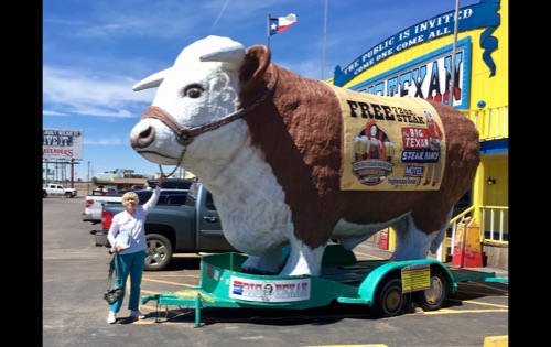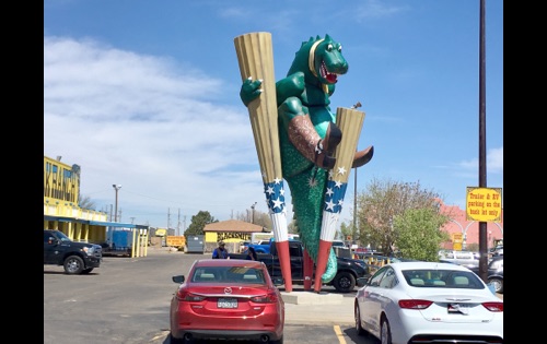 In March of 1970, the Big Texan ‘said’ farewell to the Mother Road & opened at its present day location. Since that date The Big Texan has been blessed with continuous prosperity and has grown into an international icon. Big Tex-Rex (the green dinosaur outside the restaurant) was dedicated to the Spirit of the Mother Road, Route 66.