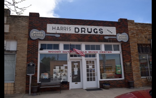 Pampa locals, Thelma Bray and Glenna Lea Miller, established the Woody Guthrie Folk Music Center in 1991. Housed in Pampa’s historic Harris Drug Store (a one-time Guthrie employer) the Center serves as musical venue for live events throughout the year and a museum of relics that chronicle Woody's life and music.