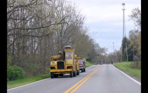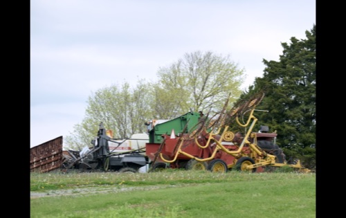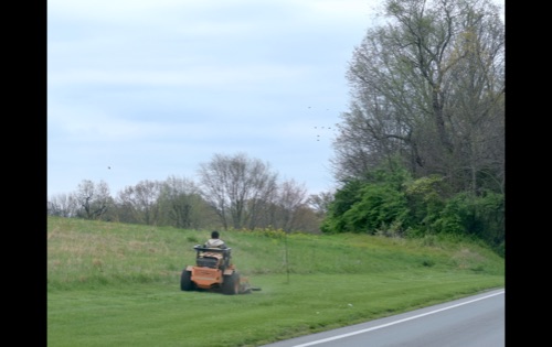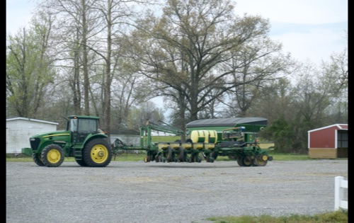 Today we went through farm country. So you will see plenty of farm equipment. Jorge always wanted a motorized lawn mower. He said it would make any man a happy man. First, he needs a big lawn and, secondly, needs to stop watching the movie Forest Gump. Anyway, the road was much more interesting than taking the interstate highways. Hey, check out those dogs in the golf cart below!