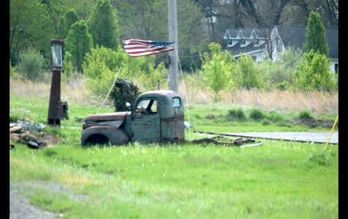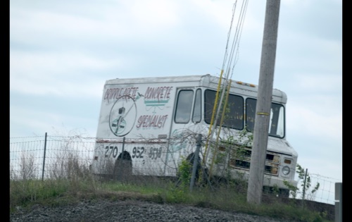 As most towns do, Mt. Vernon IL has a visiting center. Supposedly, there’s a small replica of the Washington Monument. We couldn’t locate it but we did find these dandy signs stuck together as art.