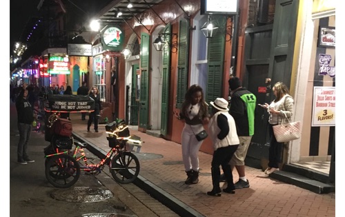 After arriving in New Orleans we headed toward the famed Bourbon Street. It is in the heart of the city’s oldest neighborhood, the French Quarter. Between Canal Street and Esplanade Avenue, it extends for 13 blocks and is known for its bars and strip clubs.
