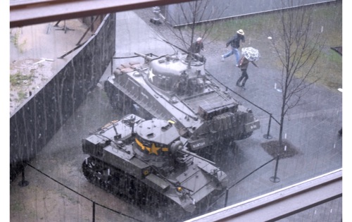 The forecast for New Orleans today was rain and the weathermen was certainly right. We dressed for the occasion and took a cab to drop off our dog, Tickle, at a care center until tomorrow when we leave. It was the best for all of us as the National World War II Museum was not taking dogs.