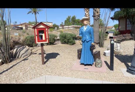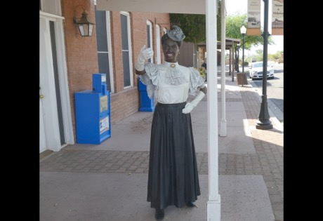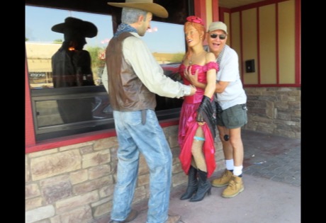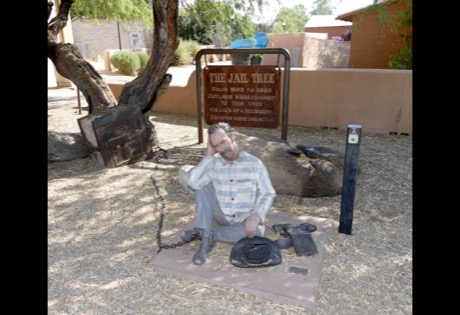 We took more pictures of the statues in Wickenburg before leaving. Of interest to Ellen the Felon and Tickle the Trickster was the Tree Jail. And if you are wondering, yes, Jorge got his hand slapped. You may find out more about the statues by clicking here.