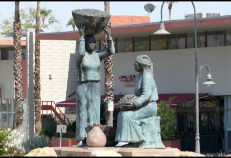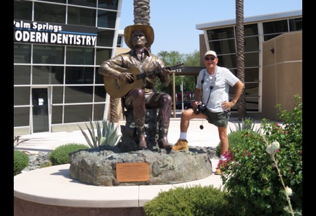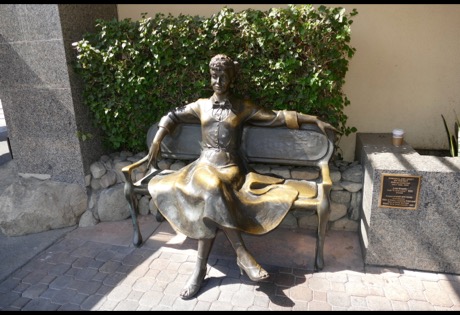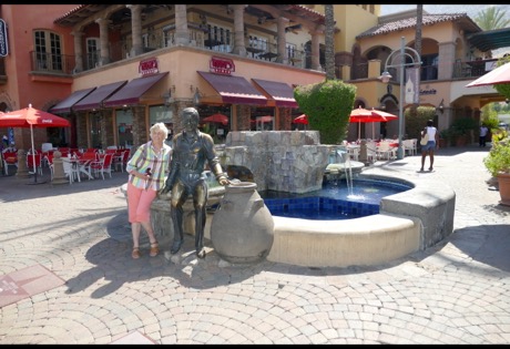 Then we drove into Palm Springs CA in search of some serious movie and TV stars. Having seen Marty Robbins and Rex Allen in Wilcox AZ earlier, we had to first go to see the statue of Gene Autry, America’s favorite singing cowboy. Click here to hear him sing. And check out Ellen with Sunny Bono and Lucille Ball (Lucy Ricardo). Jorge couldn’t sit next to her because she was too hot. It was 113°F. Yikes!