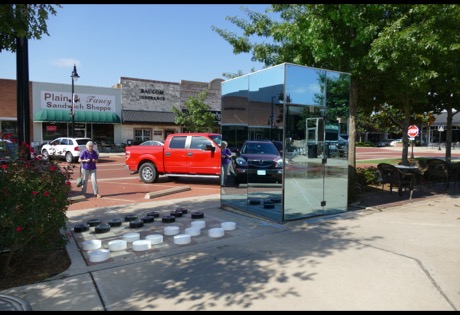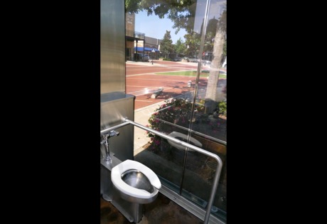 Texarkana is located in both Texas and Arkansas, hence the name. The dividing line crosses midtown right through the local post office and federal court house. Then, in Sulphur Springs TX, we needed to use America’s only bathrooms with see-thru walls. One was out of service but the other did the job! Yes, it is a one way mirror and you can only see from the inside out.