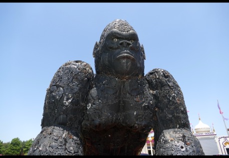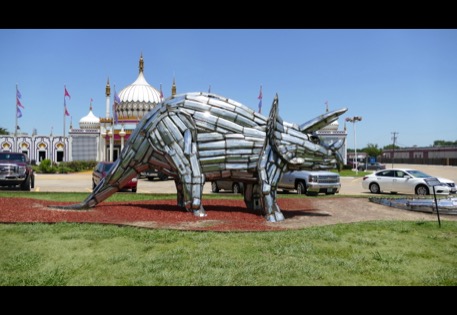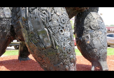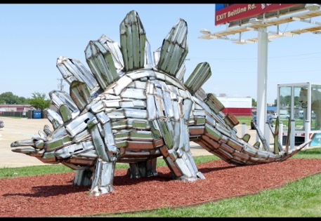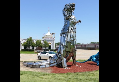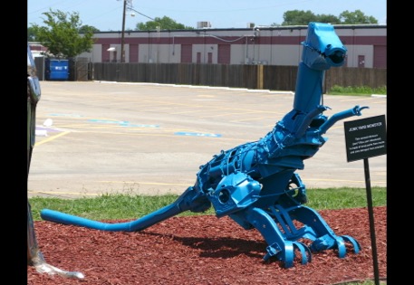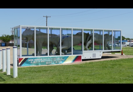 On our way to Abilene TX we stopped to look out side a Ripley’s Believe it or Not Museum. The gorilla is made of auto parts and the three dinosaurs are made of chrome auto bumpers! One baby dino was made of car junk. Caged in a glass trailer were some very large lions made of 35 miles of wool for the 2012 London Olympics.