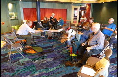 While Bob Grappel was teaching his class we managed to catch a dancer outside our window. She had headphones on and was listening to another kind of music but seemed to synchronize well with what was playing in our room. Of course, not one of his students was distracted by the scene outside…not even the photographer!