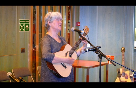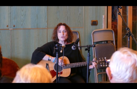 The movie below is our second Open Mike session. Karen Broderick sang harmony with Judy Barrett. Margaret Crowl humored us with a couple of delightful and thoughtful songs. Dorothy Waite and Carolyn Lesh complemented each other beautifully. Sara Keller can really sing and that cute little dulcimer is a blast. Then, of course, there is Janet Dove’s peaceful and warm style. All very well done!