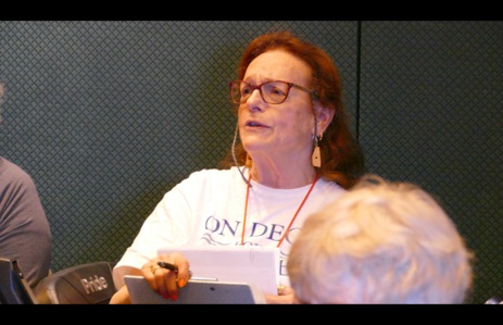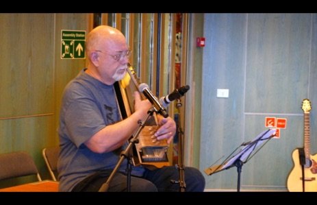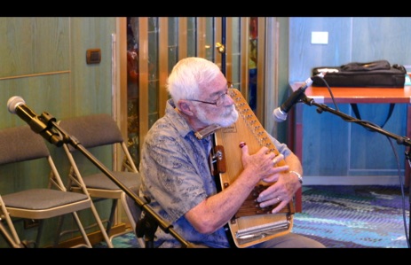 Eileen Kozloff’s unique talent was exhibited (below) for us as she demonstrated a few of the songs on her new CD. This occurred before the jam. As you can see (below), she also asked several MLAG friends to back her up on a couple of songs. What style!