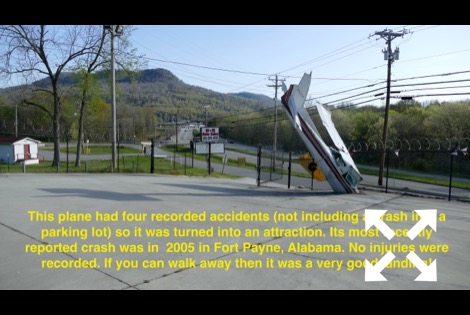 Check out that picture below of the crashed airplane. That’s the kind of thing we like to find! That’s why we headed for the Unclaimed Baggage Center (UBC) also located in Scottsboro. If someone ever loses a piece of luggage on a plane, train, bus or ship then the odds are that six months later it ended up at this place. Most luggage does not get lost but when all avenues of uniting it with its owners are exhausted it goes here. Still, over 5,000 new items are added to the store’s shelves every day!