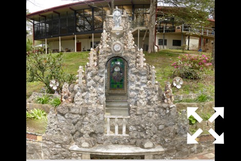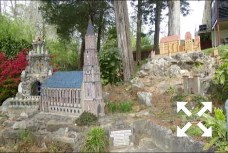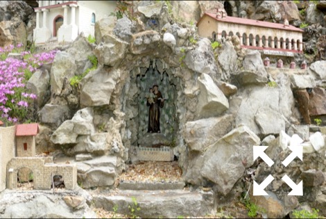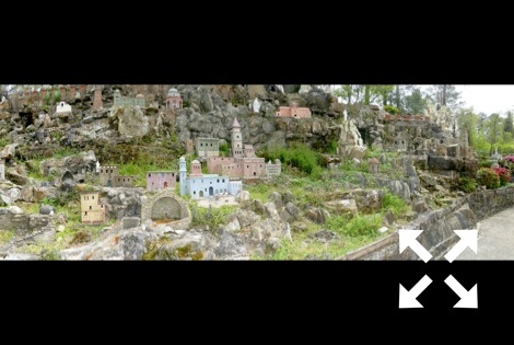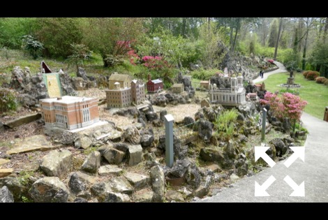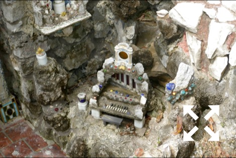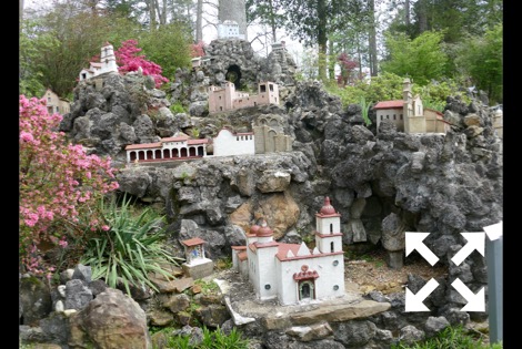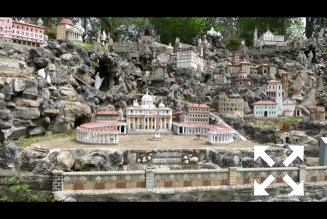 The stone and concrete models are the work of Brother Joseph Zoettl, a Benedictine monk, who devoted some 50 years to the project, the last three decades (1932 to 1961) almost without interruption. They incorporate discarded building supplies, bricks, marbles, tiles, pipes, sea shells, plastic animals, costume jewelry, toilet bowl floats and cold cream jars. One could spend much time pouring over the details. Go there!