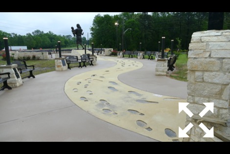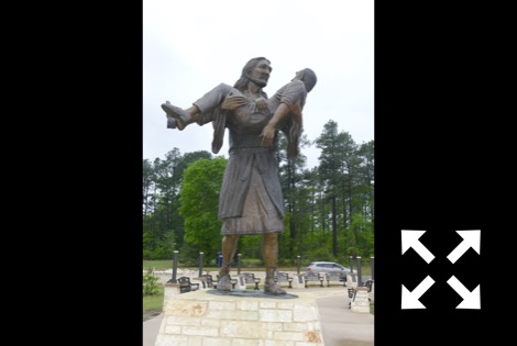 In Carthage, TX we found a fourteen foot tall ‘Carry Me Jesus’ by sculptor Bob Harness Shawnee. He was inspired in 2008 when he read a poem entitled “Footprints in the Sand.” The story was written in the 1930’s. Interestingly enough, the man being carried is Willie George who gave Shawnee $25,000 to kickstart the project.