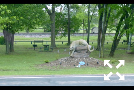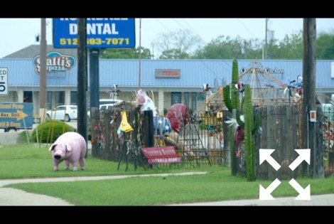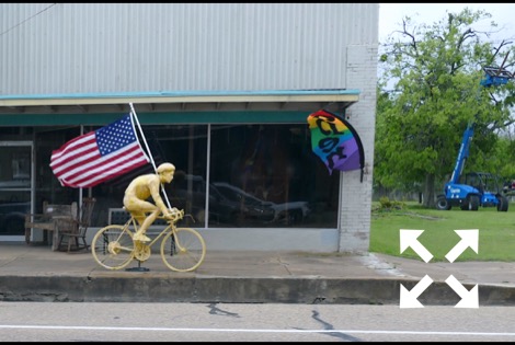 As always, we have an eye out for odd art. Check that cougar. He looks ready to pounce! Then there is the yellow man on a yellow bicycle. Today, he was sporting an American flag and the wind was blowing the in correct direction. He is located in Calvert, TX.