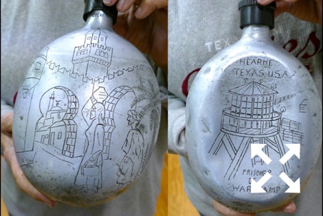 Then we got serious again by going to a World War II POW camp and museum in Hearne, TX. Erwin Rommel was their commander who did not surrender. His Africa Korp did and were sent to this prison. Commissioned in 1942, it also housed prisoners from all three Axis powers. Today there stands a single replica of a barracks on the site of the former camp, which contains a museum. With lots of time on their hands many prisoners turned to art and music. One wood working project was supposedly etched wbyith using a magnifying glass to burn i. Wow!