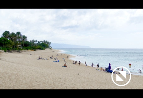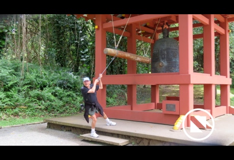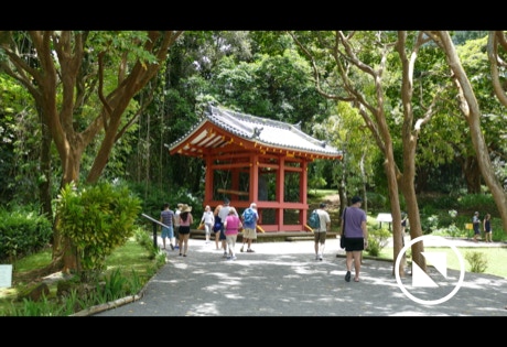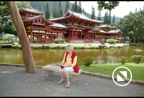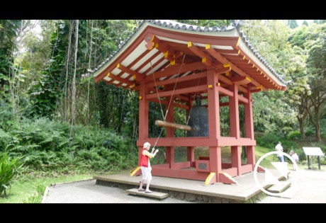 Today we took a tour bus around the island. There’s always stuff to see from the bus but we had to stop at the beautiful Byodo-In Buddhist Temple. For good luck we each rang the big bell. Then it was off to a northern beach which was much less crowded than Waikiki and therefore more desirable.