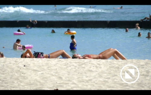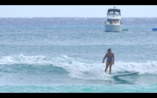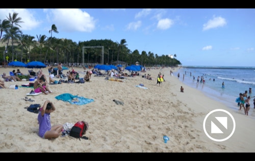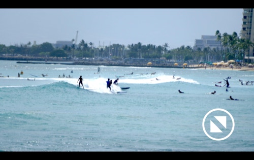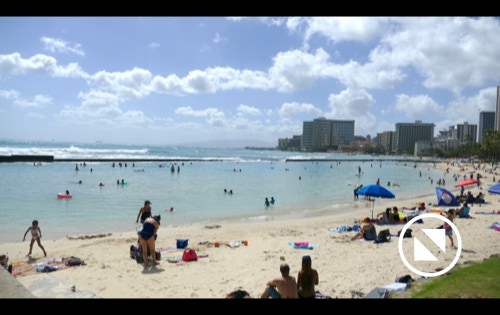 Waikiki has a man-made breakwater structure that was not evident at high tide. As time went on we saw it. It really does make a difference for the swimmers by the beach.