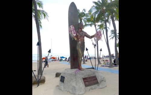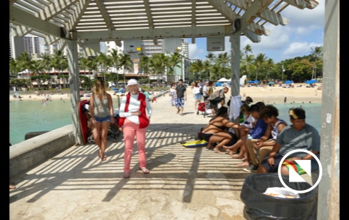 Ellen and Jorge decided that it was time to visit Pearl Harbor to see the USS Arizona Memorial. Our taxi from the airport was a limousine. After we arrived at our hotel we took a stroll down to the world famous Waikiki Beach. Do you know what a modern thong bikini is? Jorge does now and nearly broke his neck looking here and there. The best word to describe the beach area is: Crowded.