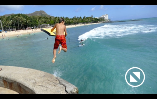 There is a pier sticking out which divides Waikiki Beach. From what we could tell it’s main purpose was to allow people to jump off into the Pacific Ocean. Oh, there are signs that state that it is not allowed. They are happily ignored by all.