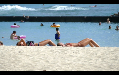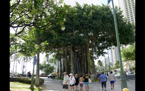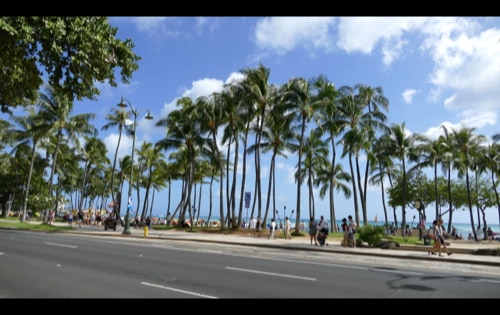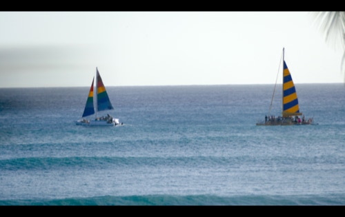 Hawaii definitely lives up to its blue ocean reputation. Off shore there are bunches of surfers and boats of various kinds. Large catamarans looked to be popular. Smaller dinner cruise ships were evident too.