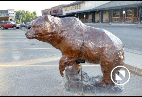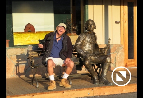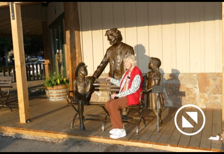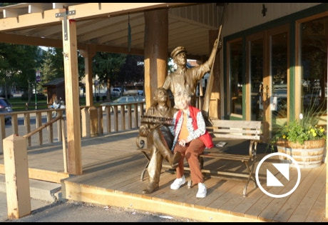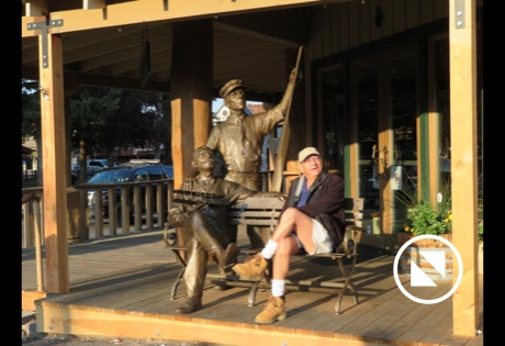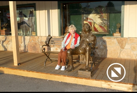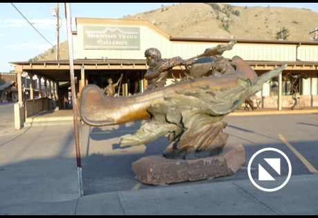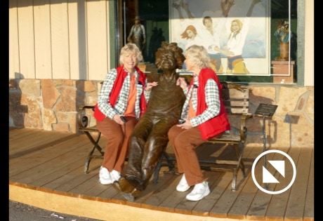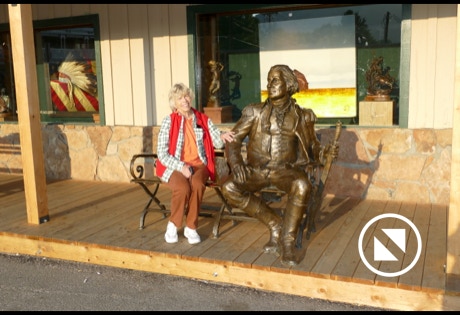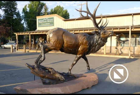 We took a photo by the elk antlers in Jackson WY. The town square has a set on each corner. Then we hit a gold mine at the Mountain Trails Gallery with statues of American heroes. In one picture you can see Albert Einstein pondering the mysteries of quantum mechanics and trying to figure out Ellen. Good luck, she’s a woman!
