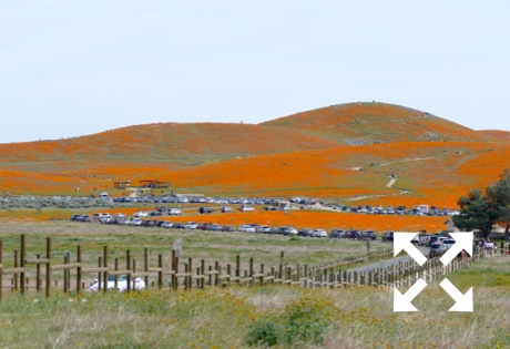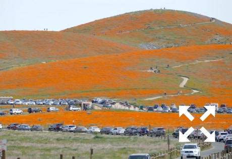 You may note through our photos that California looks pretty green. That’s due to all the water we got this rainy season. It was the perfect time to visit the Antelope Valley California Poppy Reserve. Unfortunately, the rest of the world decided to see it too.