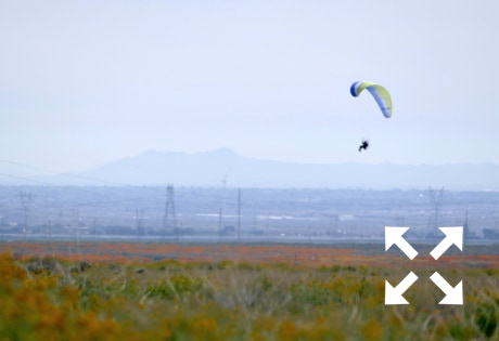 There was such a large crowd that it made it hard to get into the park. We did get some zoom lens pictures and we will have to come back another time when there are fewer people. One fellow hooked himself to a parachute and revved up his motor to get a private view of the poppy fields below.