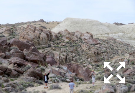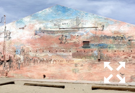 Fish Rocks is a drive-by place to take pictures but Jorge had to climb all over the rocks. What a monkey! The rocks are officially in the town of Trona where we enjoyed our lunch. Ellen had the biggest sandwich we’ve seen. We found an interesting but fading mural around the corner. Check it out when the picture comes up. Hovering your mouse curser over a photo will stop the picture rotation. Click on it to see an enlarged view.