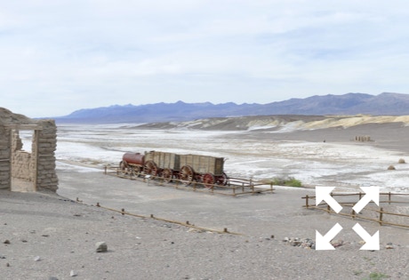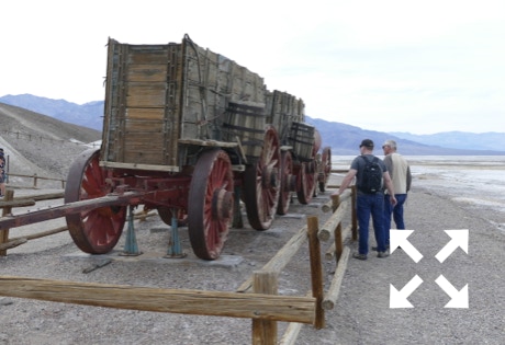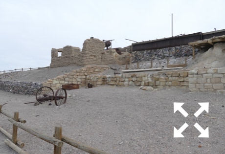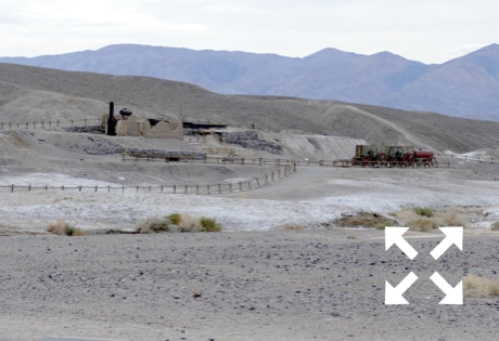 We could not take Tickle out there because dogs are not welcome anywhere in the park. Too bad. The Harmony Works Interpretive Center Trail would have been a nice one to walk her. It featured a 20-Mule Borax train (two cargo wagons and one water tank wagon). The partial remains of the first Borax processing plant are there too with a few adobe buildings spread here and there.