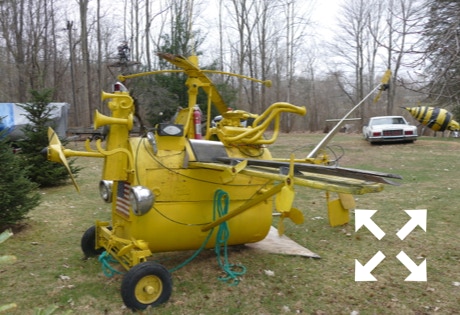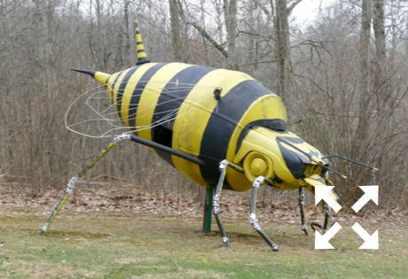 We had a few interesting drive-by photo opportunities today. The VW Bug-Spider was one. The bee must have taken a long time to make. It is big. Whoever put this on his front lawn must have a good sense of humor. This kind of activity is called AUTOArt.