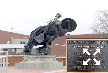 The giant Scotsman at Edinboro PA is 12’ tall and reportedly weighs in at 25,000 lbs. It is located at the University of Edinboro which also feature the inflated Z Dome. The fabric weighs 52,000 lbs. Now that’s a heavy weight!