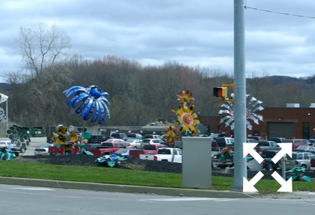 Road signs are ubiquitous. Someone decided to take them and make a sculpture garden in Meadville PA. We didn’t get to see the whole garden so we’ll have to return someday.