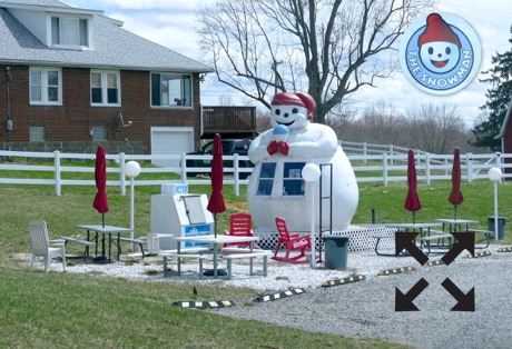 In Portersville PA we found a cute Snowman ice cream stand. The Snowman also features a mobile unit for events and private functions.