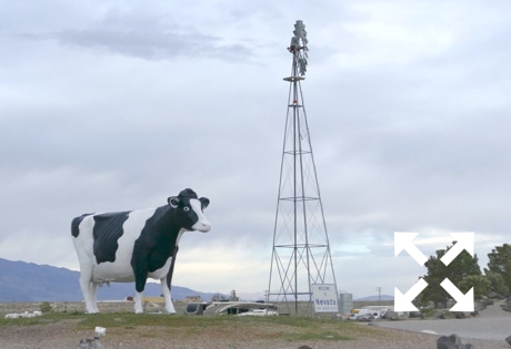After crossing the Nevada border we spotted a giant cow and a giant bull (across the street). Just roadside attractions!