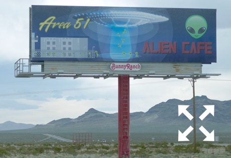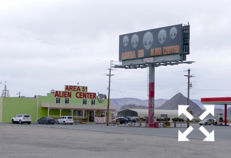 There is a new freeway in the area of Boulder City to assist with traffic control at Hoover Dam. It got us lost because our GPS gadgets didn’t have the new roads in them. Eventually, we found our route and went down U.S. Highway 93 to the Arizona Last Stop. One thing for sure, these people love outer space aliens.
