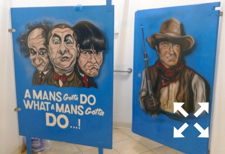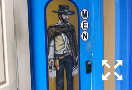 We left the historic Amargosa Opera House and Hotel. Ellen took a few pictures of the place thinking that the wall murals had interesting perspective (check out that guitar). Marta Becket bought the place and painted the murals. As a multi-talented woman (artist, dancer, pianist) she thought it proper to own her own opera house. BTW, the plumbing in the hotel is very old. If you go, don’t expect warm showers nor the toilet to work properly. It was probably spectacular in its day. That’s a heads-up warning.