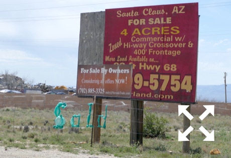In the 1930’s Nina Talbot and her husband moved to Santa Claus, Arizona. For awhile she started a Santa attraction which eventually went bust. The buildings and land are now up for sale.