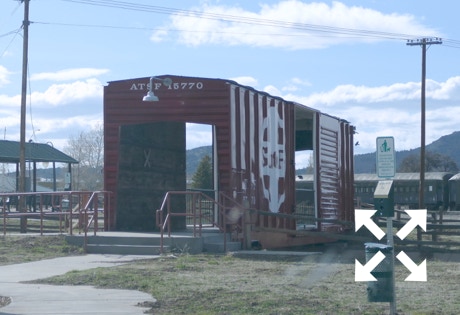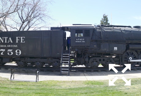 Ellen’s chuckwalla was found in Kingman AZ where, not too far from it, we found Locomotive Park for Tickle to walk in the grass. The park features a railroad engine, coal car and caboose. Yes, one is allowed to climb around it. Pretty neat!